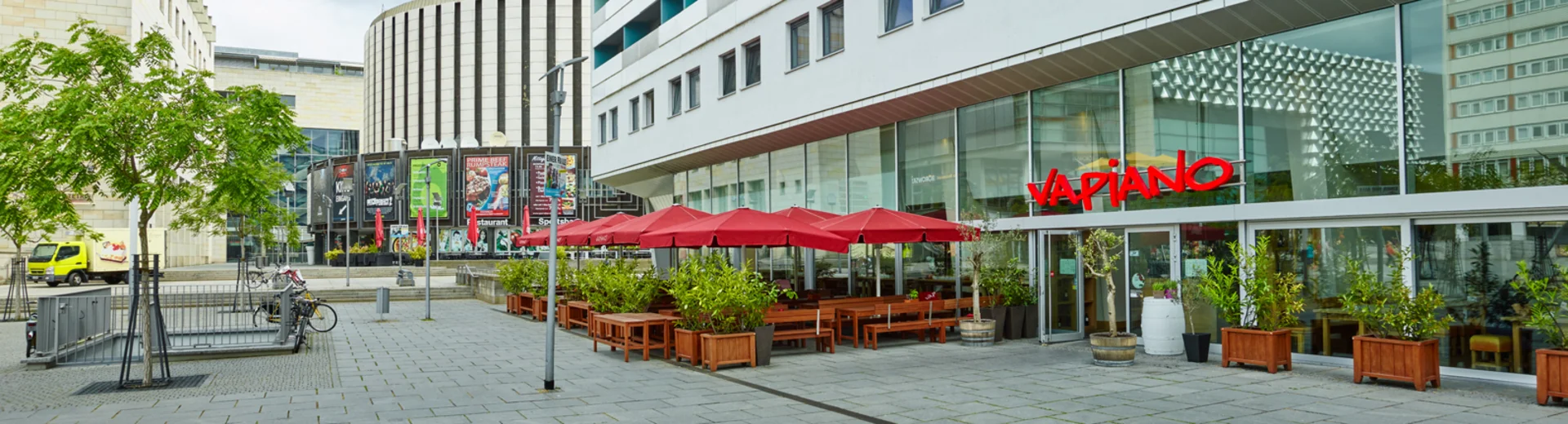 Das VAPIANO Dresden Prager Straße liegt zentral in der Innenstadt, direkt auf der Prager Straße. In modernem Ambiente genießt Du italienisches Essen mit hausgemachter Pasta, knuspriger Pinsa, Pizza und Insalata, individuell nach Deinem Geschmack. Bei uns findest Du außerdem vegetarische, vegane und glutenfreie Optionen. Dank der zentralen Lage nahe Altmarkt, Hauptbahnhof und Shopping-Möglichkeiten ist unser Restaurant ideal für Lunch, Dinner oder eine Pause beim Stadtbummel.
