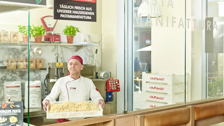 Das VAPIANO Leipzig liegt zentral in der Leipziger Innenstadt und ist der perfekte Treffpunkt für eine entspannte Pause oder ein gemeinsames Essen. In modernem, urbanem Ambiente genießt Du frisch zubereitete Pasta, knusprige Pizza und Insalata ganz individuell nach Deinem Geschmack. Ob Lunchpause, After-Work oder Dinner: Dank der zentralen Lage nahe Shopping-Möglichkeiten, Sehenswürdigkeiten und dem lebendigen Stadtzentrum ist unser Restaurant ideal für einen Besuch in der Stadt. Egal ob vegetarisch, vegan oder klassisch – im VAPIANO Leipzig findest Du immer Dein Lieblingsgericht.
