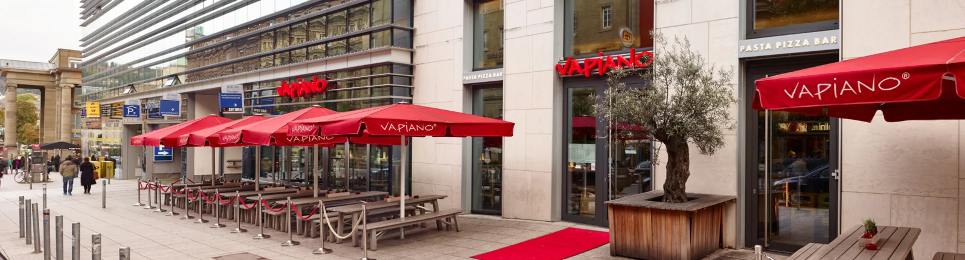 Das VAPIANO Stuttgart ist ein modern gestaltetes Restaurant mit einer offenen, entspannten Atmosphäre, in der man sich sofort wohlfühlt. Mitten im Stadtleben findest Du hier einen Ort, an dem italienisches Essen in ruhiger, ungezwungener Umgebung genossen wird – ganz ohne Hektik. Du genießt bei uns italienisches Essen mit hausgemachter Pasta, knuspriger Pinsa, Pizza und Insalata, ganz nach Deinem Geschmack. Außerdem findest Du vegetarische, vegane und glutenfreie Optionen – ideal für Lunch, Dinner oder einen entspannten Abend in Stuttgart.